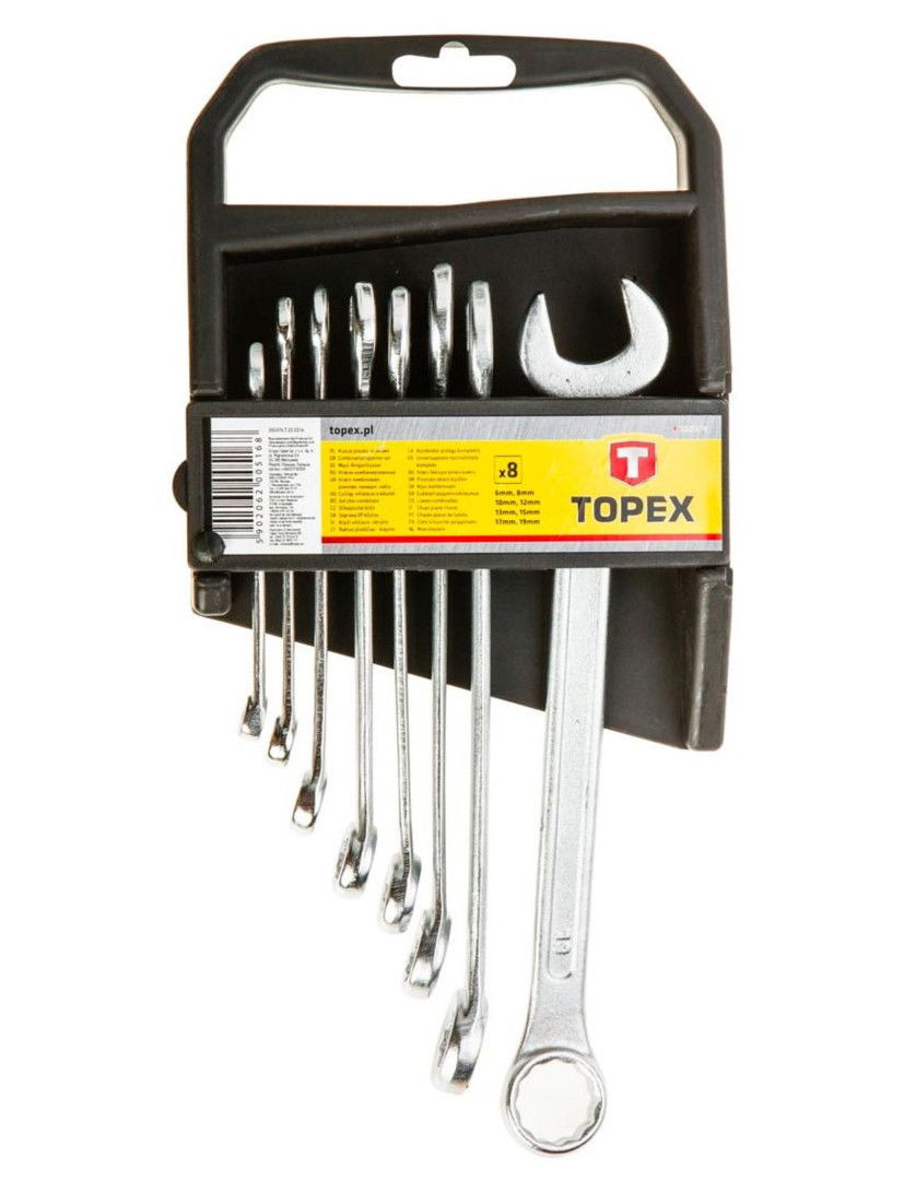 - TOPEX csillag-villáskulcs készlet, a leggyakrabban használt méretű kulcsokkal: 6, 8, 10, 12, 13, 15, 17, 19 mm