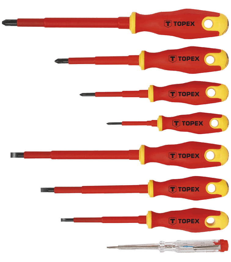 - A TOPEX csavarhúzókészlet a legfeljebb 1000 V feszültség alatti munkákra szolgál.