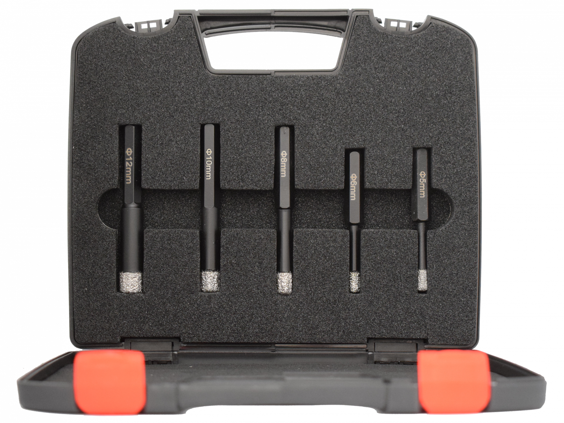 Abraboro Gyémántszemcsés csempe- és kerámiafúró készlet műanyag táskában (5 db-os)