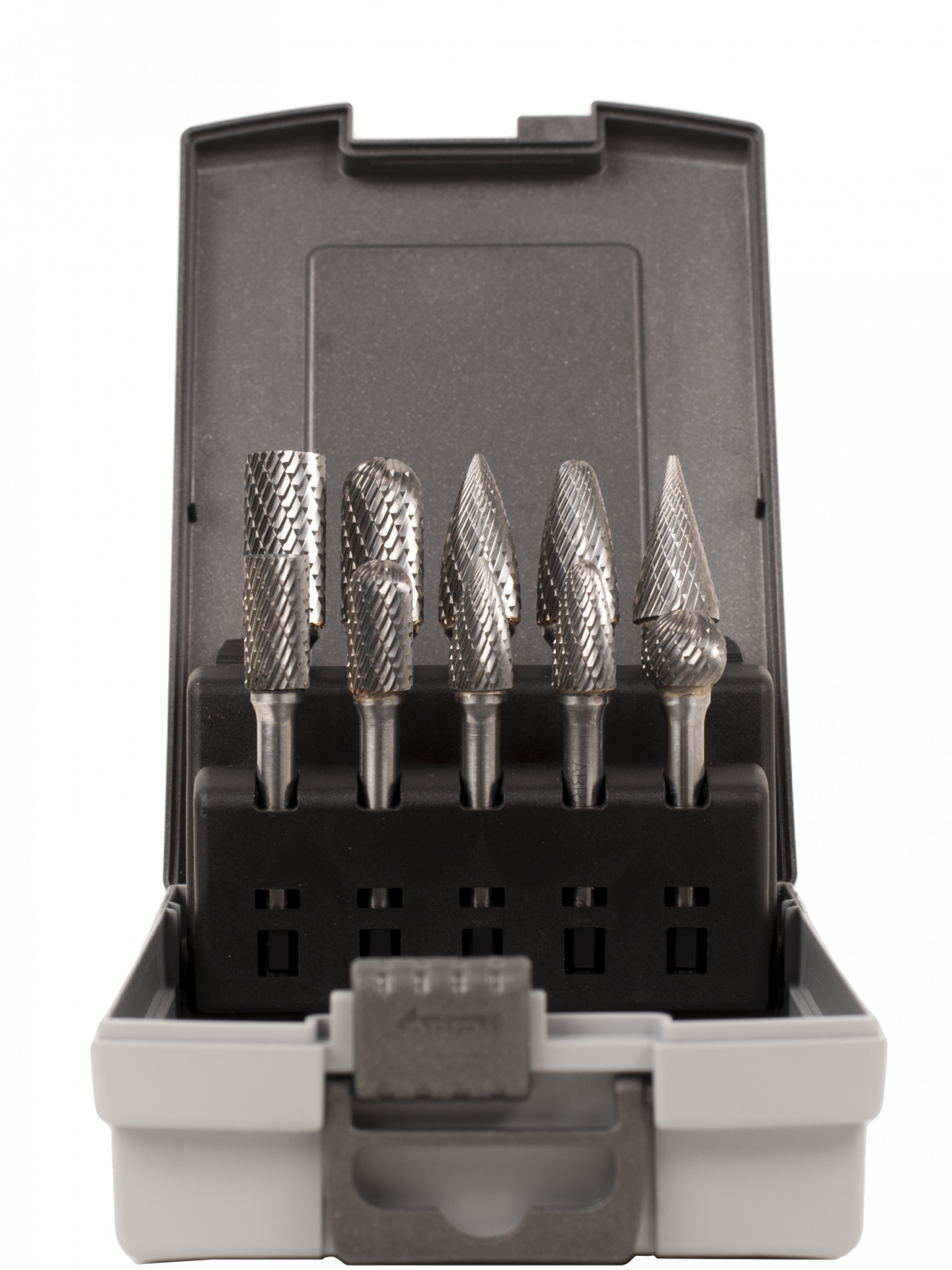 Abraboro No. 3 keményfém turbómaró készlet, 10 db, műanyag dobozban, kereszt fogazással