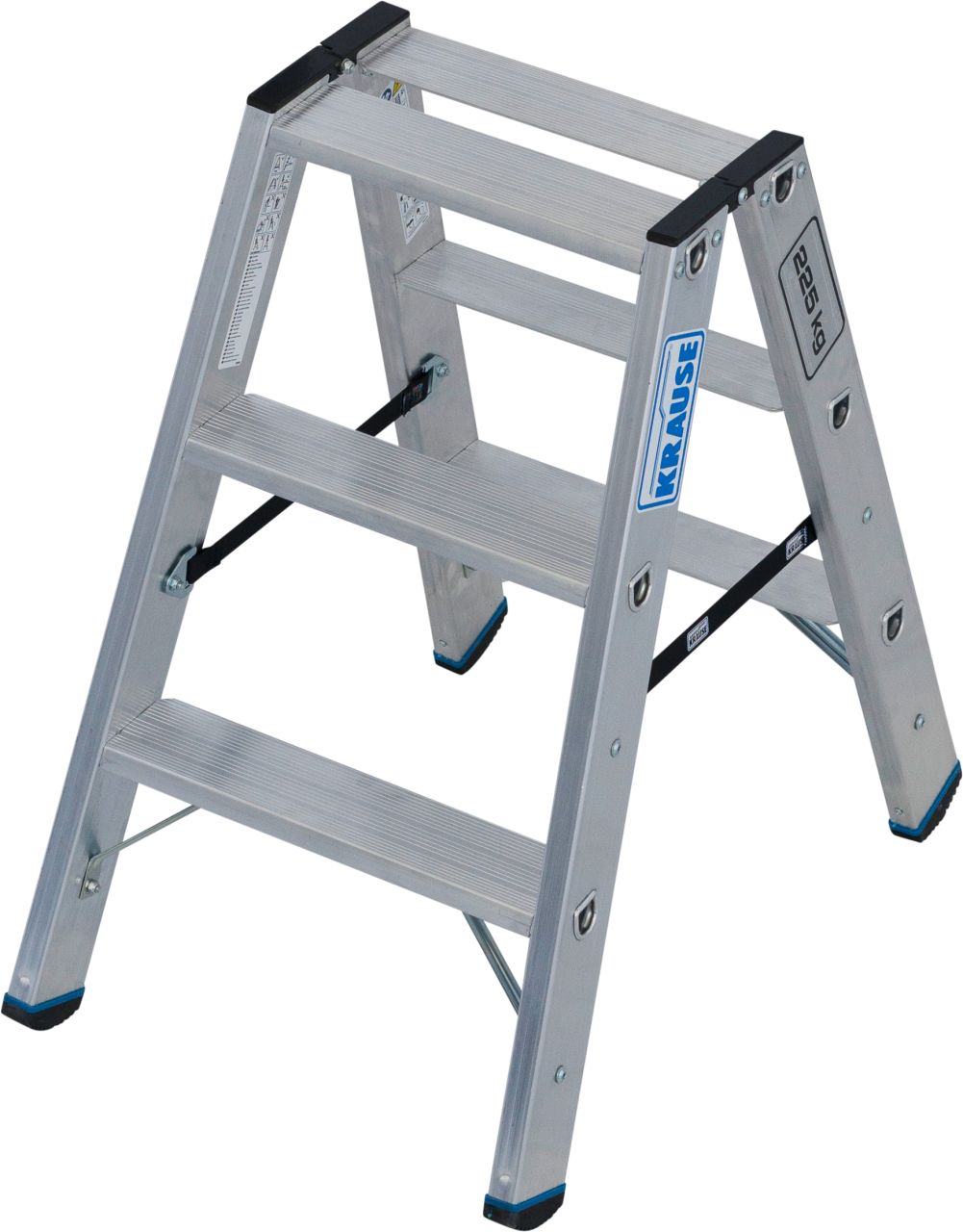 Krause két oldalon járható lépcsőfokos állólétrákKrause lépcsőfokos létrák 225 kg teherbírássalLeírás